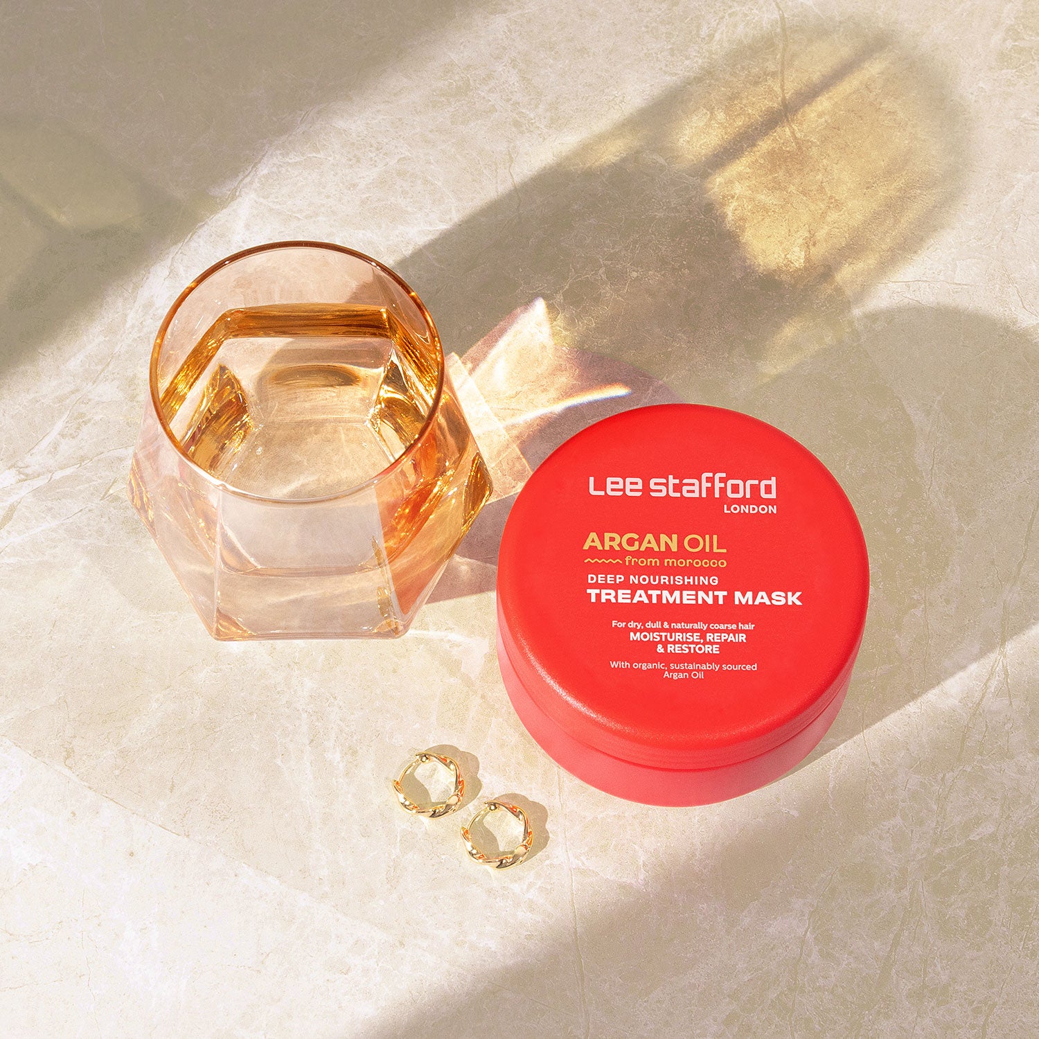 Die Lee Stafford Argan Oil Intensivpflegemaske ist so hart arbeitend wie luxuriös und sorgt dafür, dass dein Haar gesünder aussieht und sich auch so anfühlt, repariert und wiederhergestellt wird und Weichheit und Glanz verbessert. Sie erledigt die ganze Arbeit für dich. In nur 5 Minuten nährt sie mit der Kraft des "flüssigen Goldes" Arganöl, einem Elixier, das reich an Vitaminen ist, um die Hydratation für weiches, glattes und besser handhabbares Haar zu steigern.